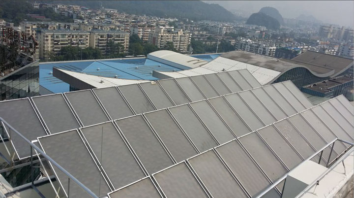 中软现代城位于桂林市七星区漓江路28号,地处桂林中央公园群核心,位于南城百货北侧,甲天下广场西侧,占地55亩,总建筑面积近10万平米,是桂林博览园开发有限责任公司投资开发的商品房项目,循坡式而建 蜜桃影视,是一个集高尚住宅,智能写字楼,会展酒店的城市综合体, 该酒店采用276㎡硅吸膜平板型太阳能集热与4台空气源热泵能源互补集成热水系统,每天为该酒店提供20吨舒适的洗浴热水。