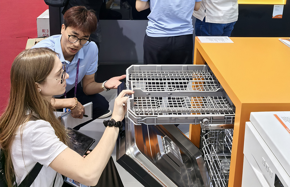 在首发型号基础上,万和本次发布的洗碗机新品,还可通过自动开门、交替洗、自动洗等智能升级,实现能效更高,水耗更少,噪音更低的环保目标。除性能升级外,万和洗碗机还在消费者体验上全面升级,新品搭配碗篮不锈钢把手,推拉更有质感;结合负载可调碗篮结构和灵动可变刀叉架,满足消费者摆放不同尺寸餐具的空间需求;通过“Glass Protection”配件,在洗涤过程中更好地保护玻璃餐具等等。未来,万和洗碗机也将持续研发升级,满足全球消费者的不同需求。