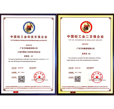 万和位列“中国轻工业五金制品行业十强企业”前五