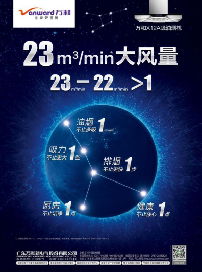 6月23日下午,国内热水器,厨房电器,热水系统专业制造企业及领先品牌——万和携品牌代言人赵薇,在北京中国电影导演中心举办了主题为“大·不一样”的2017年品牌战略暨X12A新品吸油烟机发布会,广东万和新电气股份有限公司总裁卢宇聪表示,此次发布新品 蜜桃影视,不仅象征着万和品牌战略的全面升级,更是万和在烟机技术实力的集中展现, 发布会现场除了有万和电气总裁卢宇聪,万和电气国内营销中心常务副总经理方红军,万和电气国内营销中心常务副总经理麦春红,北京中怡康时代市场研究有限公司总经理贾东升等领导出席,更有万和代言人赵薇莅临现场,为万和的新品发布造势,发布会在别开生面的TVC短片,吸睛的演员表演以及品牌代言人赵薇的烘托下,处处充满看点,而就整场发布会而言,最具吸引力的看点当属万和这台今年厨电系列的明星产品——“爱厨巨蟹座”X12A吸油烟机, X12A吸油烟机 大吸力颠覆传统 据万和电气国内营销中心常务副总经理麦春红介绍,这款名为X12A的烟机采用了多项行业领先技术,其中超大吸力和双涡旋吸技术是其最大卖点,为增加吸力,X12A使用第四代风道系统,使烟机在一次旋转下产生双倍动力,最大吸力可达23立方米/分钟,再次突破行业瓶颈,成为业内首款23立方大吸力吸油烟机, 此外,万和这款X12A烟机还配置了无级变速触控条,节能生态LED灯,倒三角双叠滤油网和黄金60度防碰撞等设计,尽显人性化。