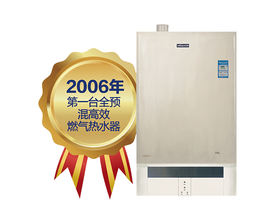 万和推出第一台全预混燃气热水器,率先采用了全预混、催化及倒烧技术,热效率达107%,再次突破行业极限,达到节能新高度。