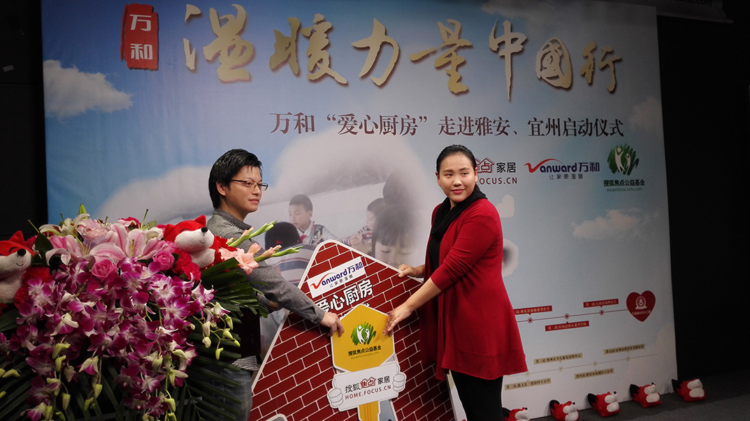 2015年11月13日,由万和发起的“爱心厨房”公益活动联手搜狐焦点公益基金联合举行“温暖力量中国行--万和“爱心厨房”走进雅安、宜州启动仪式”,搜狐焦点家居地活动进行全程报道。继广东韶关山区“爱心厨房”首站、贵州遵义山区“爱心厨房”第二站、湖北鄂州市“爱心厨房”第三站之后,万和“爱心厨房”联合搜狐焦点公益基金,即将走进雅安、宜州,持续践行探索常态化公益机制的承诺,让更多经济欠发达地区的孩子沐浴在爱心的阳光下。