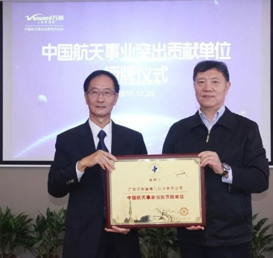 8月16日,中国航天基金会副理事长齐国生向万和集团董事长卢楚隆先生授予“中国航天基金会公益事业突出贡献奖”。