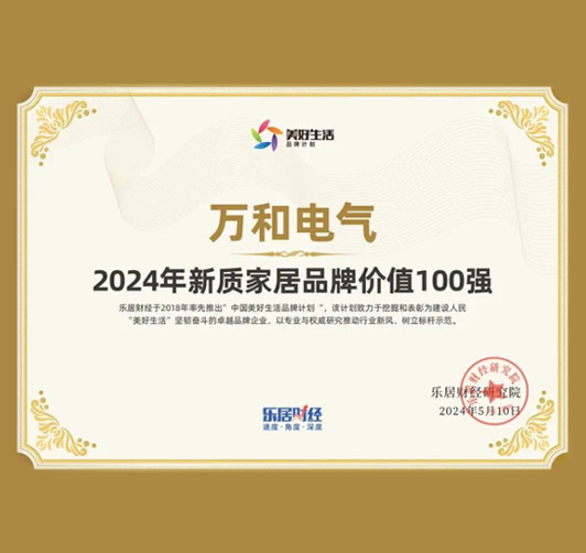 5月10日,乐居财经推出“品牌日”特别企划,万和电气荣登“2024年新质家居品牌价值TOP100”榜单,位列第44名。
