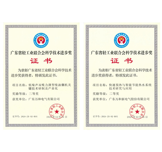 万和“燃气增压技术在家用燃气灶上的应用研究”项目获中国轻工联科学技术进步奖二等奖,“智能浴控器的研发及在燃气热水器上的产业化应用”项目获三等奖,旗下广东万和热能科技有限公司“强绕流高能效新型翅片防堵换热器”项目也收获二等奖。
