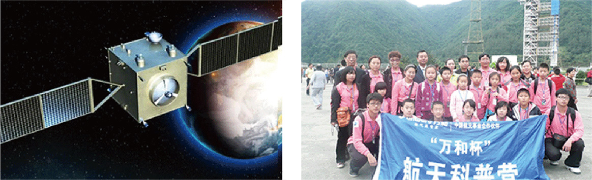 2010年“嫦娥二号”升空一一万和主办全国中小学生征文大赛并从中选拔出18名获奖中小学生组成航天科普营,现场观看嫦娥二号发射。
